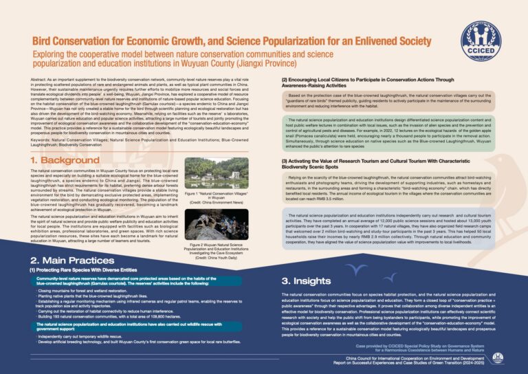 Focusing on the habitat conservation of the blue-crowned laughingthrush—a species endemic to China and Jiangxi Province—Wuyuan has not only created a stable home for the bird through scientific planning and ecological restoration but has also driven the development of a local bird-watching economy.